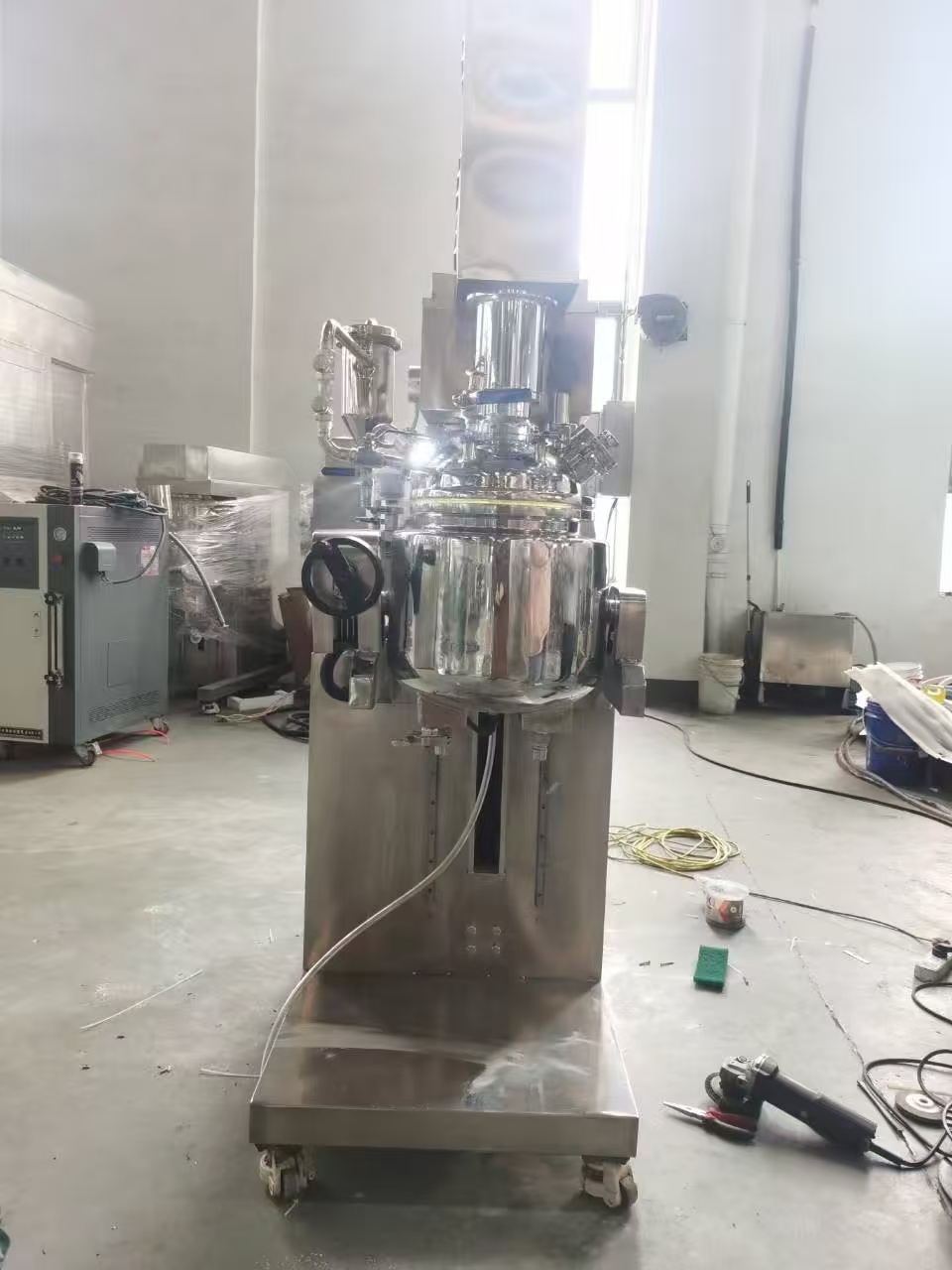 10l真空乳化ミキサー 真空環境で様々な物質を乳化・混合するために設計された装置です。コンパクトでありながら実用的な能力を備えているため、中~小ロットの材料の処理に適しています。