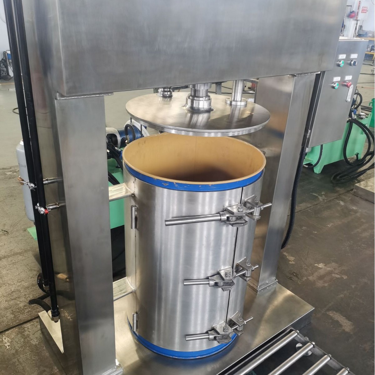 もう1つの際立った特徴は、標準化されたユーザーフレンドリーなデザインです。業界標準に準拠して構築されており、圧力とプレス時間の設定を調整できるシンプルなコントロールパネルを備えているため、オペレータはさまざまな材料(柔らかい果実と濃いハーブなど)に合わせてパラメータを微調整できます。50 lチャンバは、食品グレードの304ステンレス鋼(腐食性材料の場合は316ステンレス鋼)で作られており、研磨材からの摩耗に耐性を持ちながら衛生および安全規制に準拠しています。さらに、機械の取り外し可能なフィルタースクリーン(通常は80 ~ 120メッシュ)と簡単に開くチャンバーリッドは、洗浄とメンテナンスを簡素化し、バッチ間のダウンタイムを削減し、連続少量生産の主な利点となります。