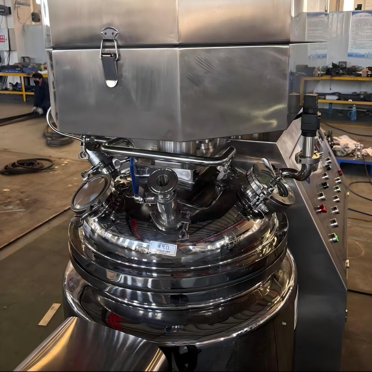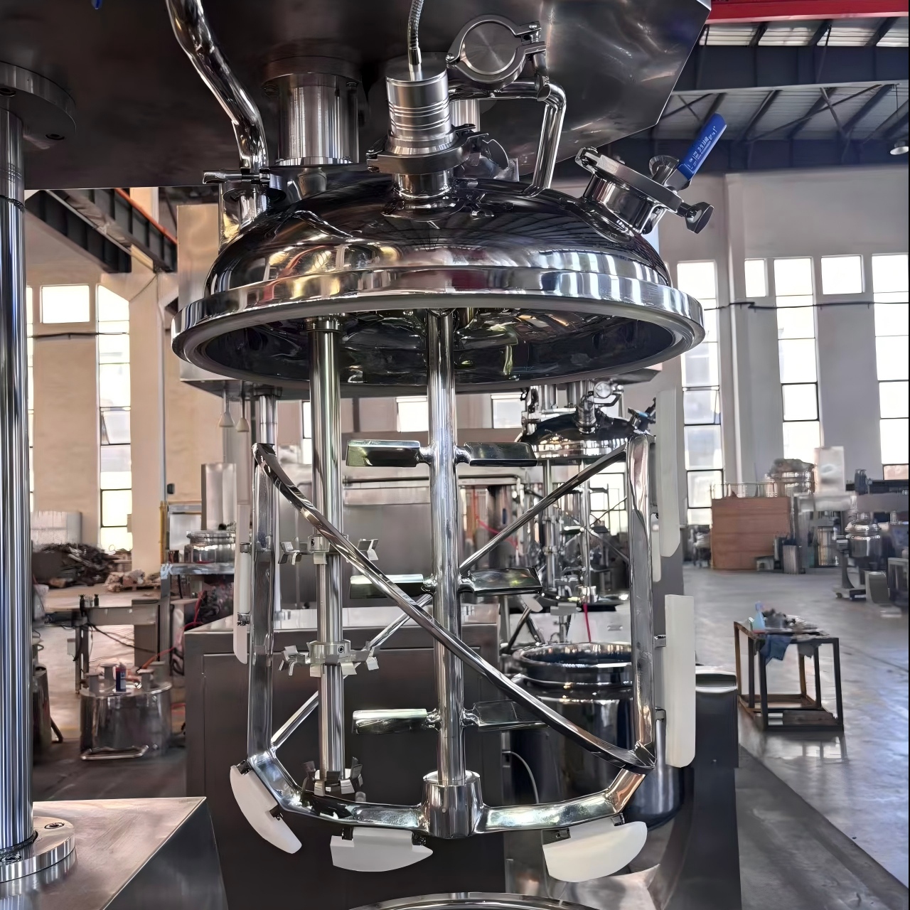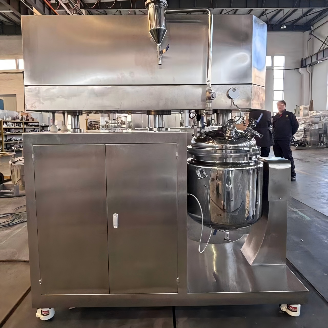 真空乳化ミキサの動作原理は、真空負圧を使用して材料をミキサに吸引し、混合して乳化することです。前述のように、真空環境は酸素含有量を減らし、酸化や劣化を防ぎ、混合物を改善する上で重要な役割を果たします'の品質と安定性。